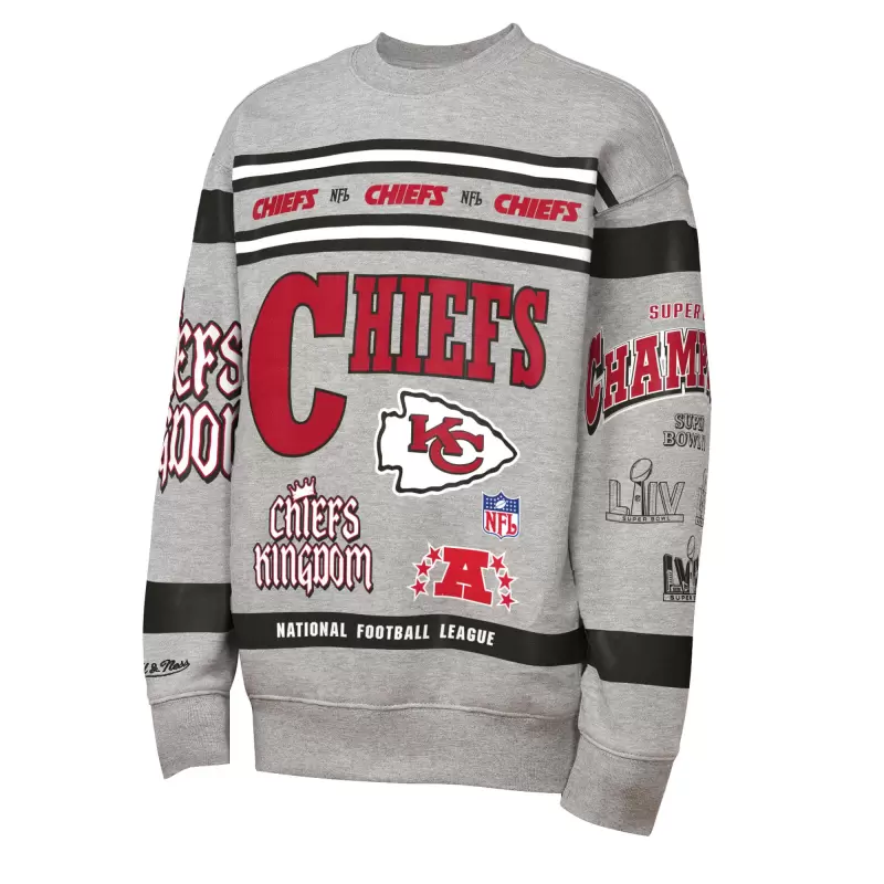Youth Mitchell & Ness Gray Kansas City Chiefs Throwback All-Over Print Fleece Sweatshirt
