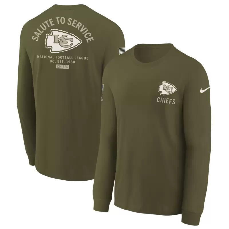 Youth Nike Olive Kansas City Chiefs 2025 Salute to Service Sideline Dri-FIT Long Sleeve T-Shirt