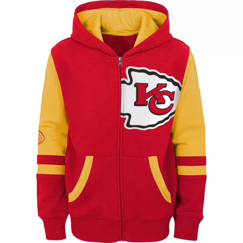 Youth Red Kansas City Chiefs Colorblock Full-Zip Hoodie