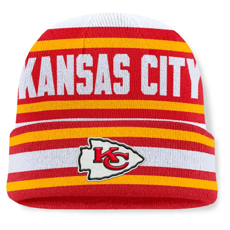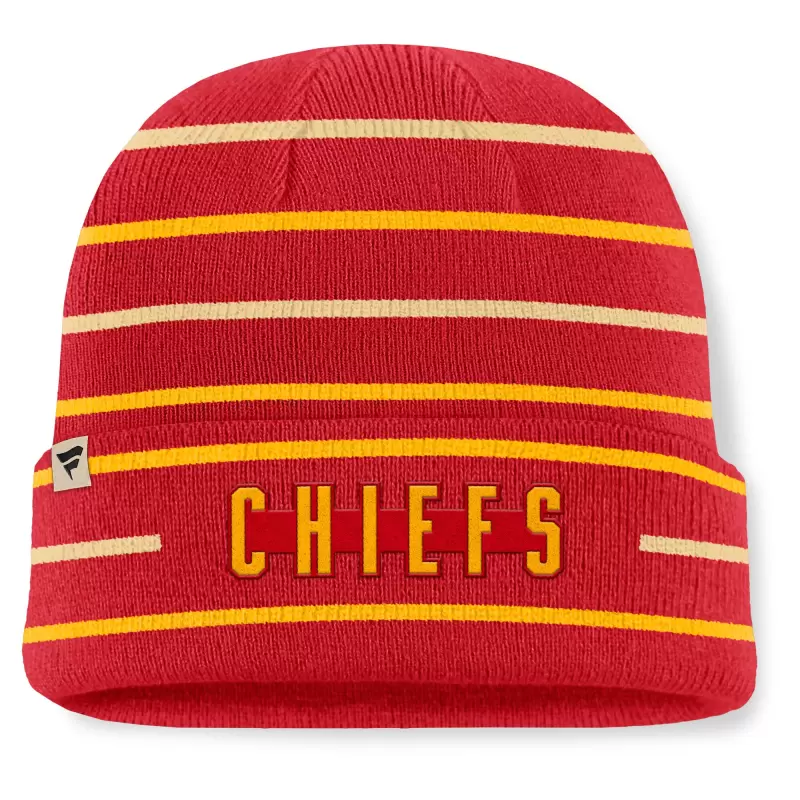 Men’s Fanatics Red Kansas City Chiefs Throwback Yard Lines Cuffed Knit Hat