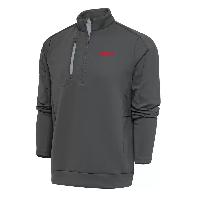 Men’s Antigua Charcoal Kansas City Chiefs Team Logo Throwback Generation Quarter-Zip Pullover Top