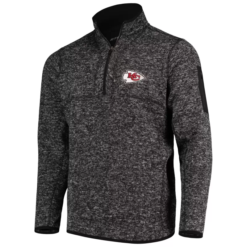Men’s Antigua Heather Black Kansas City Chiefs Fortune Quarter-Zip Pullover Jacket