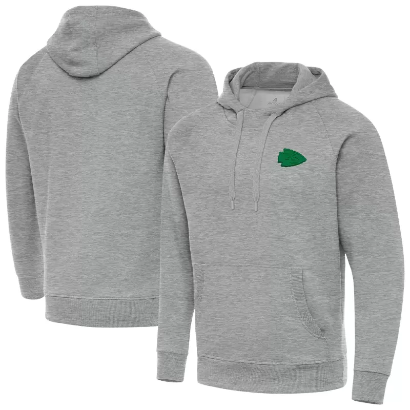 Men’s Antigua Heather Gray Kansas City Chiefs St. Patrick’s Day Victory Pullover Hoodie