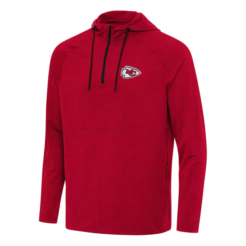 Men’s Antigua Heather Red Kansas City Chiefs Spikes Quarter-Zip Pullover Hoodie
