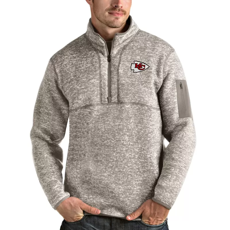 Men’s Antigua Oatmeal Kansas City Chiefs Fortune Quarter-Zip Pullover Jacket