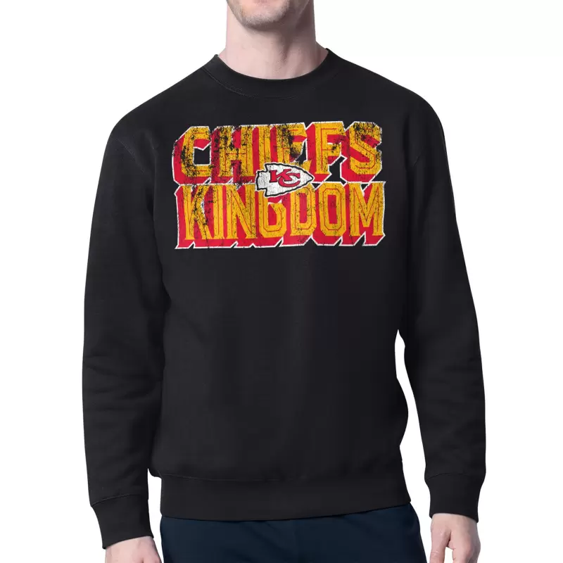 Men’s Starter Black Kansas City Chiefs Distressed Team Phrase Fleece Pullover Sweatshirt