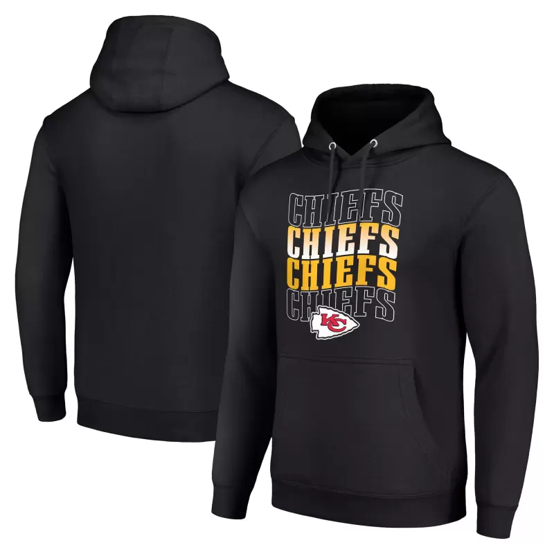 Men’s Starter Black Kansas City Chiefs Four Team Name Logo Fleece Pullover Hoodie