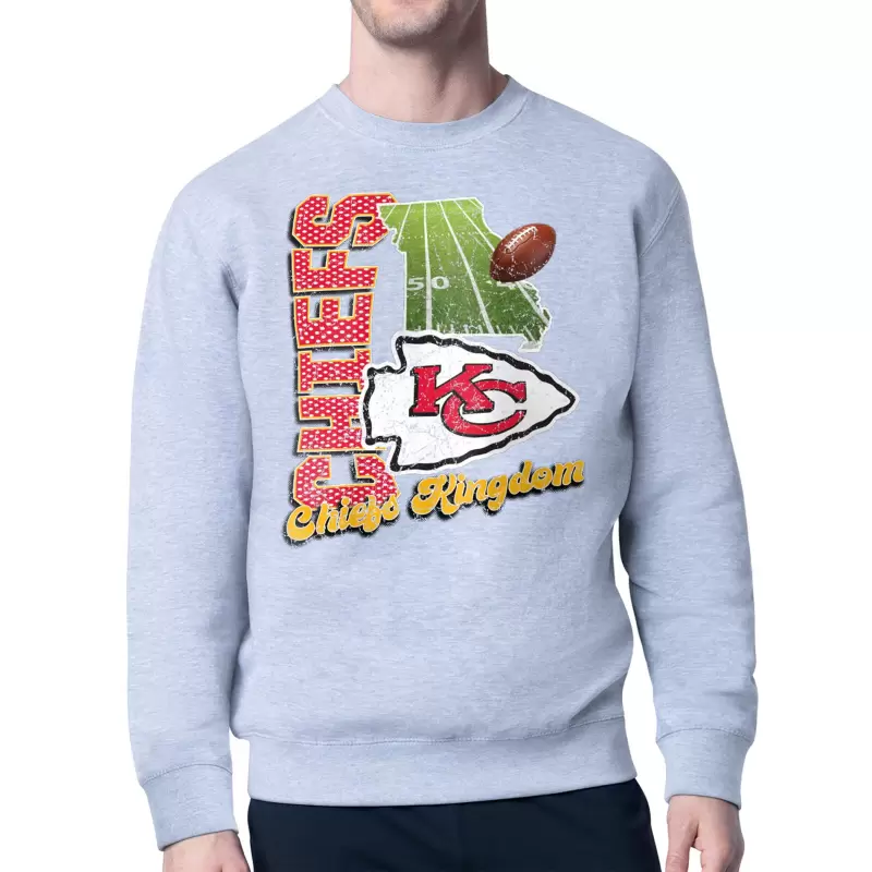 Men’s Starter Gray Kansas City Chiefs Distressed Retro State Field Fleece Pullover Sweatshirt