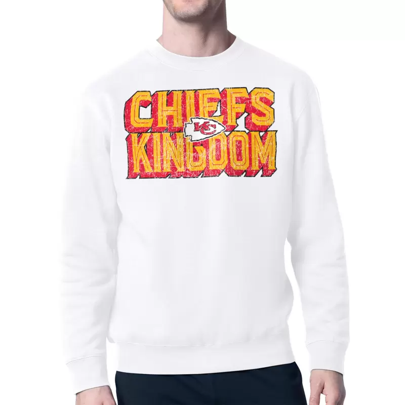 Men’s Starter White Kansas City Chiefs Distressed Team Phrase Fleece Pullover Sweatshirt