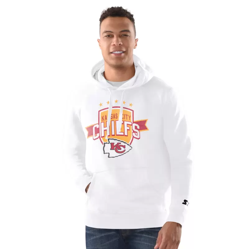 Men’s Starter White Kansas City Chiefs Shield Logo Pullover Hoodie