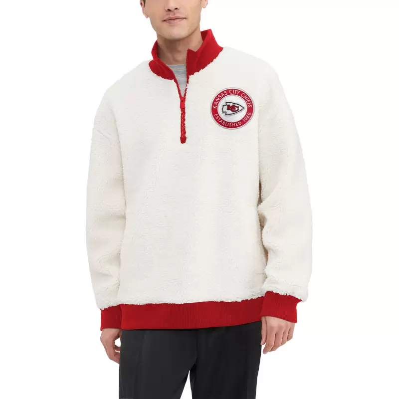 Men’s Tommy Hilfiger Cream Kansas City Chiefs Jordan Sherpa Quarter-Zip Sweatshirt