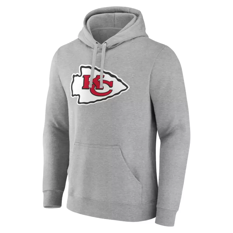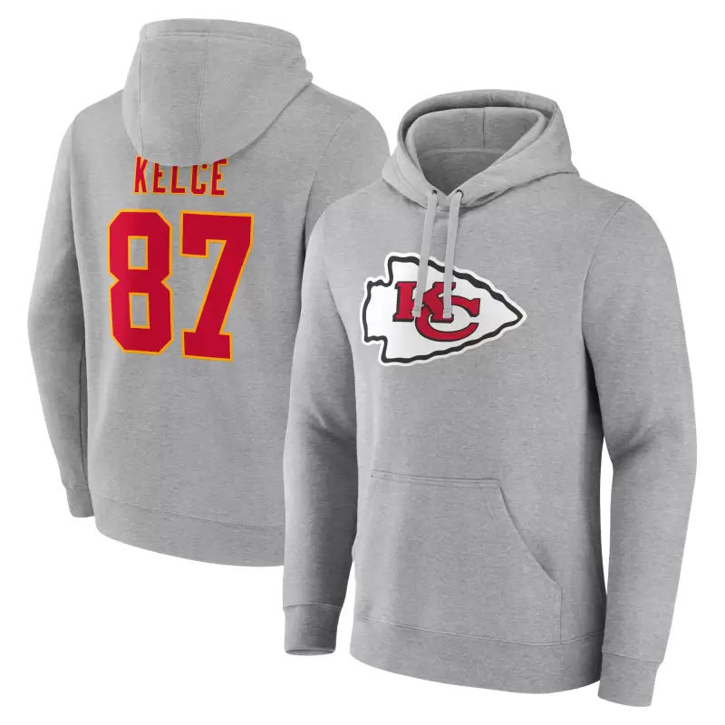 Men’s Travis Kelce Gray Kansas City Chiefs Icon Player Name & Number Pullover Hoodie