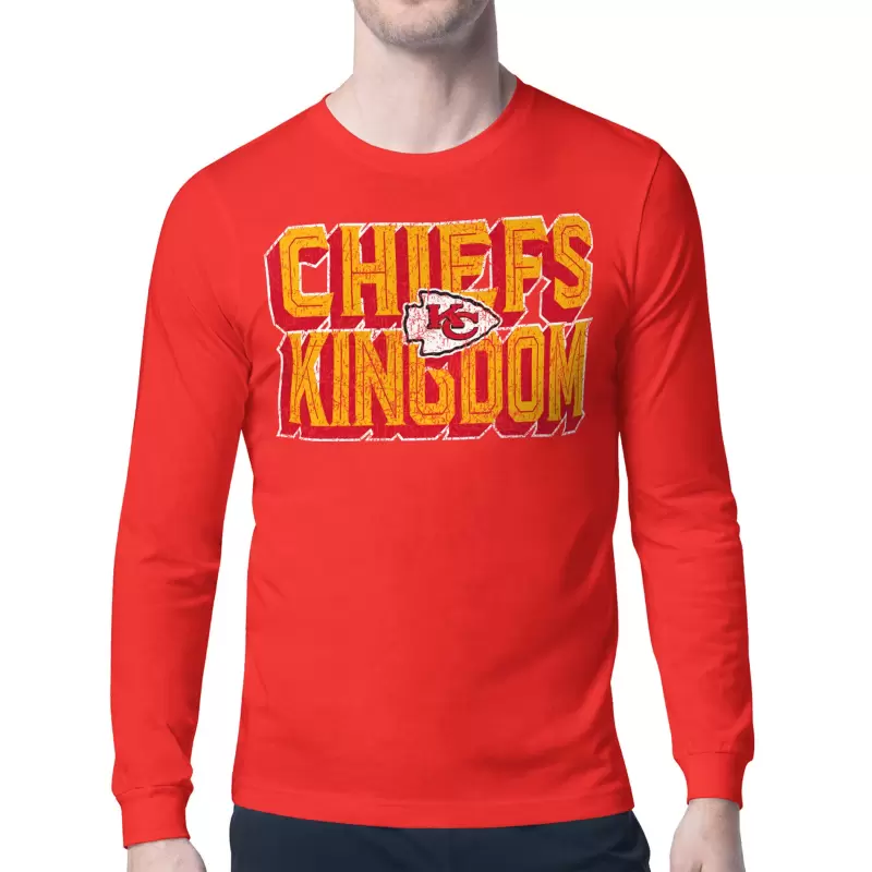 Men’s Starter Red Kansas City Chiefs Distressed Phrase Long Sleeve T-Shirt