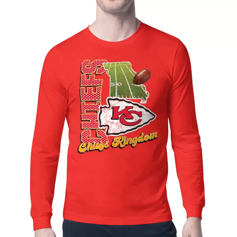 Men’s Starter Red Kansas City Chiefs Half Ball Team Long Sleeve T-Shirt