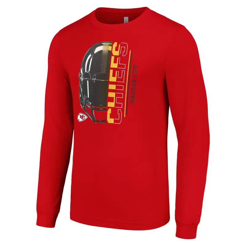 Men’s Starter Red Kansas City Chiefs Half Helmet Logo Long Sleeve T-Shirt