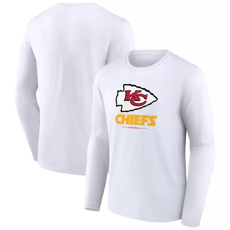 Men’s White Kansas City Chiefs Logo Team Lockup Long Sleeve T-Shirt
