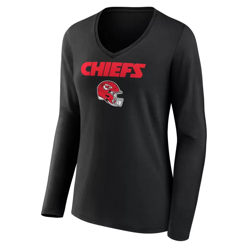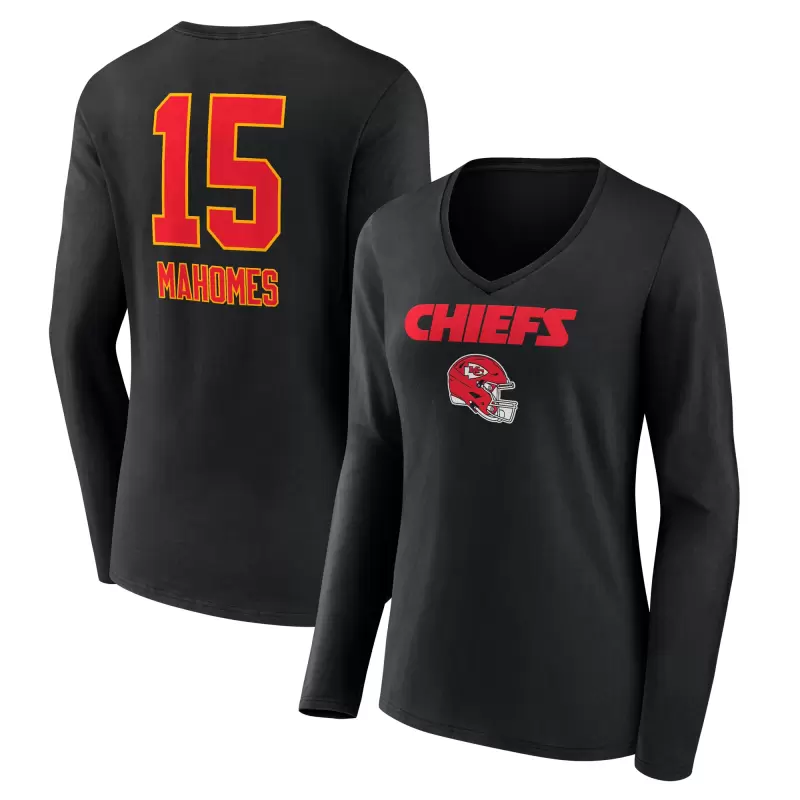 Women’s Patrick Mahomes Black Kansas City Chiefs Team Wordmark Player Name & Number Long Sleeve V-Neck T-Shirt