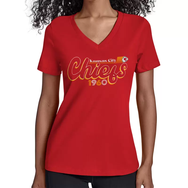 Women’s Starter Red Kansas City Chiefs Groovy Script V-Neck T-Shirt