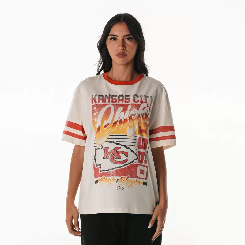 Women’s The Wild Collective Cream Kansas City Chiefs Vintage Drop Shoulder Oversized Boyfriend T-Shirt