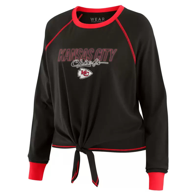 Women’s WEAR by Erin Andrews Black Kansas City Chiefs Tie-Front Long Sleeve T-Shirt