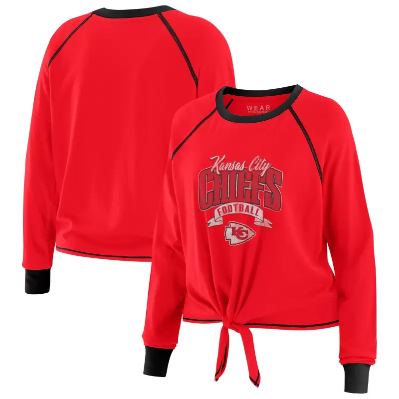 Women’s WEAR by Erin Andrews Red/Black Kansas City Chiefs Plus Size Tie-Front Long Sleeve Top