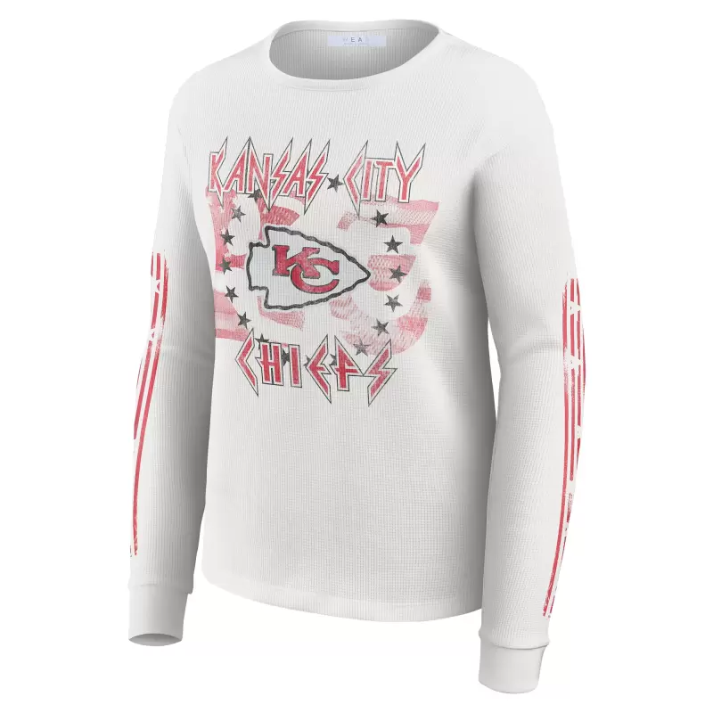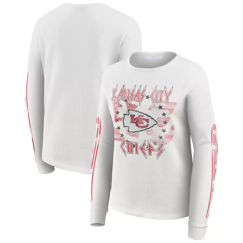 Women’s WEAR by Erin Andrews White Kansas City Chiefs Graphic Waffle Long-Sleeve T-Shirt