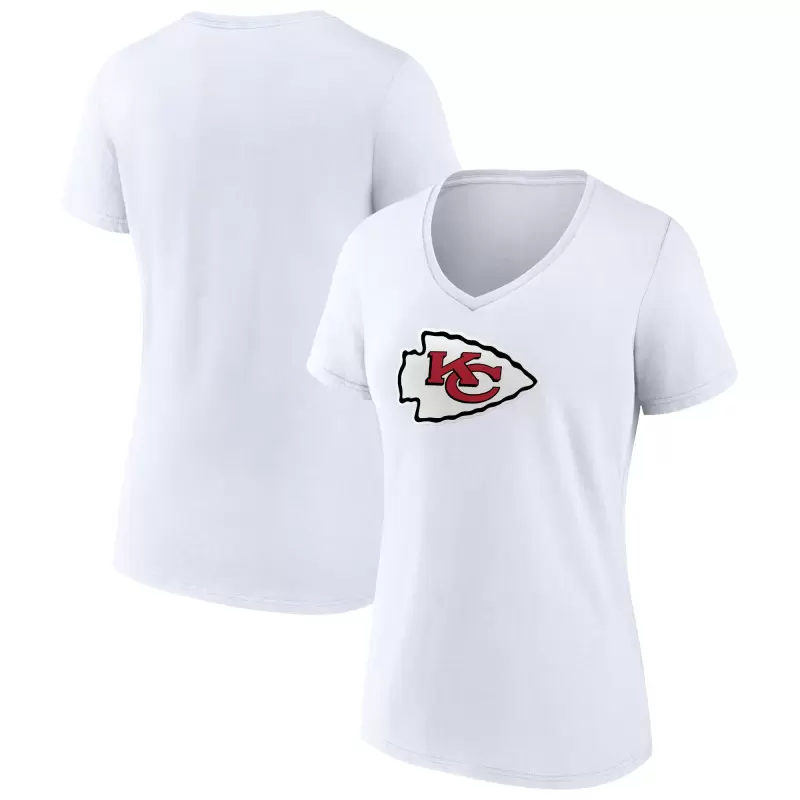 Women’s White Kansas City Chiefs Primary Team Logo V-Neck T-Shirt
