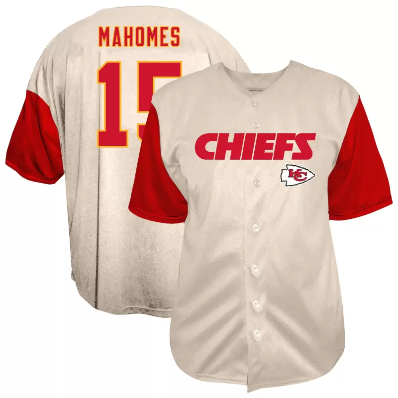 Men’s Fanatics Patrick Mahomes Cream Kansas City Chiefs Big & Tall Baseball Button-Up Shirt