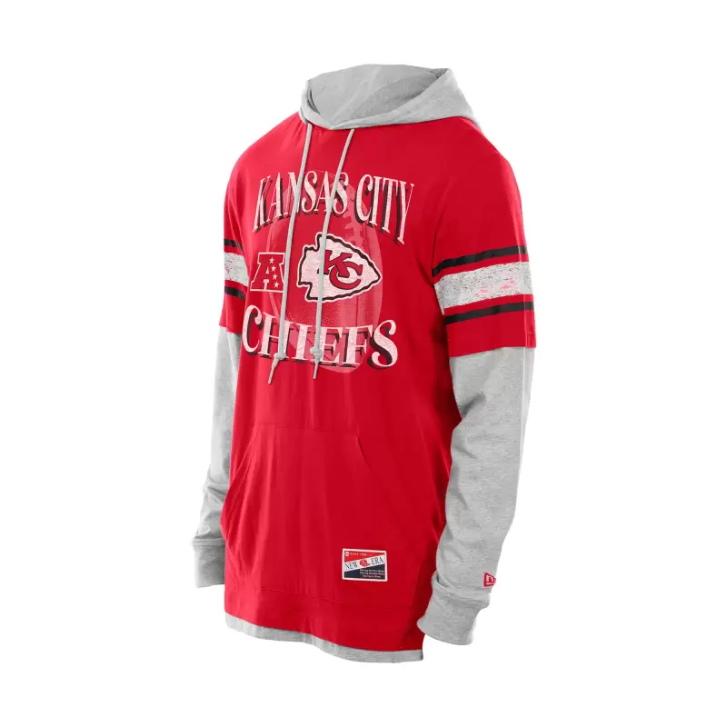 Men’s New Era Red Kansas City Chiefs Twofer Layered Long Sleeve Hoodie T-Shirt