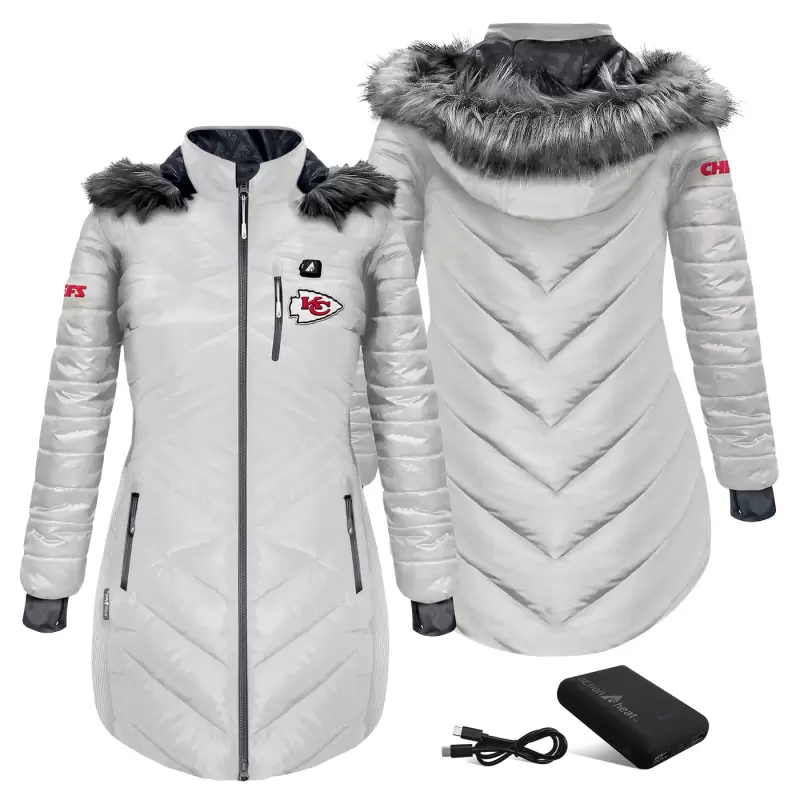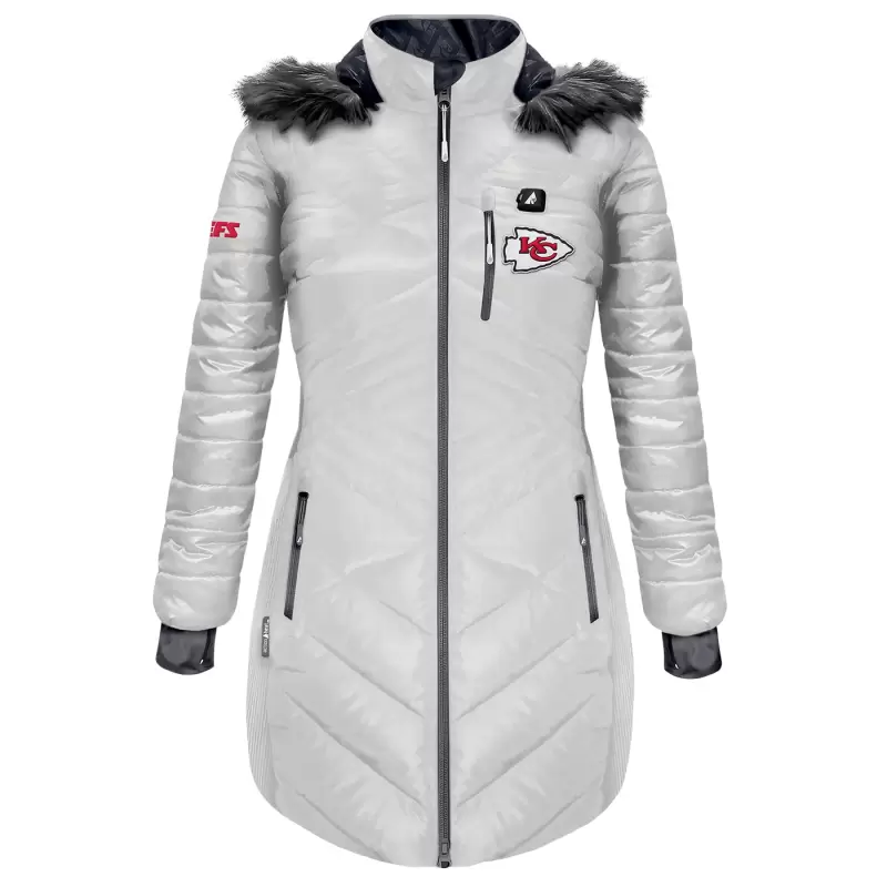Women’s ActionHeat White Kansas City Chiefs 5V Battery Heated Long Puffer Full-Zip Hoodie Jacket