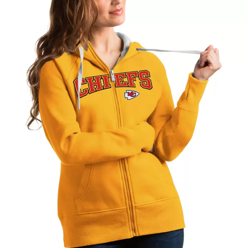 Women’s Antigua Gold Kansas City Chiefs Wordmark Victory Full-Zip Hoodie
