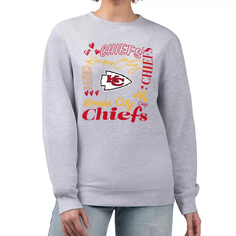 Women’s G-III 4Her by Carl Banks Heather Gray Kansas City Chiefs Heart Graphic Fleece Pullover Sweatshirt