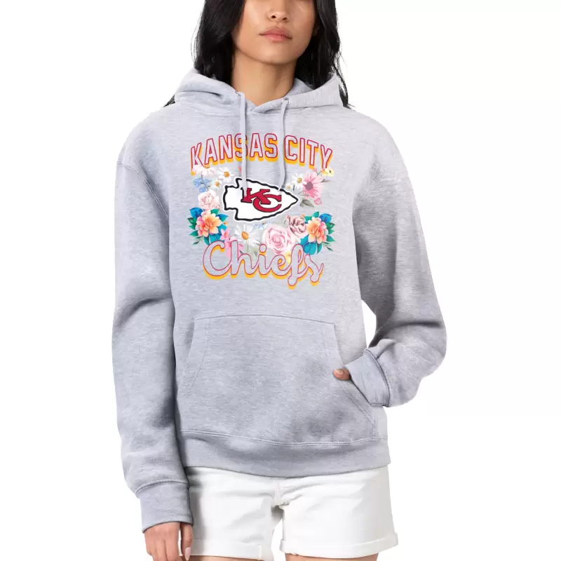 Women’s G-III 4Her by Carl Banks Heather Gray Kansas City Chiefs Flowers Team Logo Graphic Fleece Pullover Hoodie