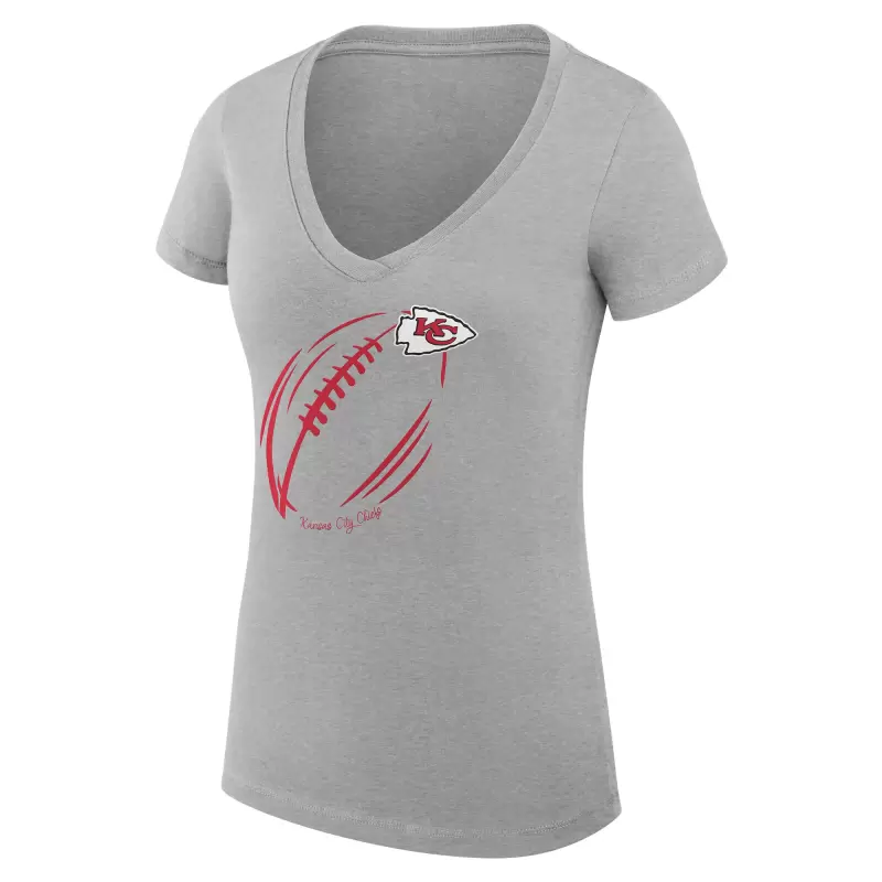 Women’s G-III 4Her by Carl Banks Heather Gray Kansas City Chiefs Super-Slim Fit Lightweight Subtle Football V-Neck T-Shirt