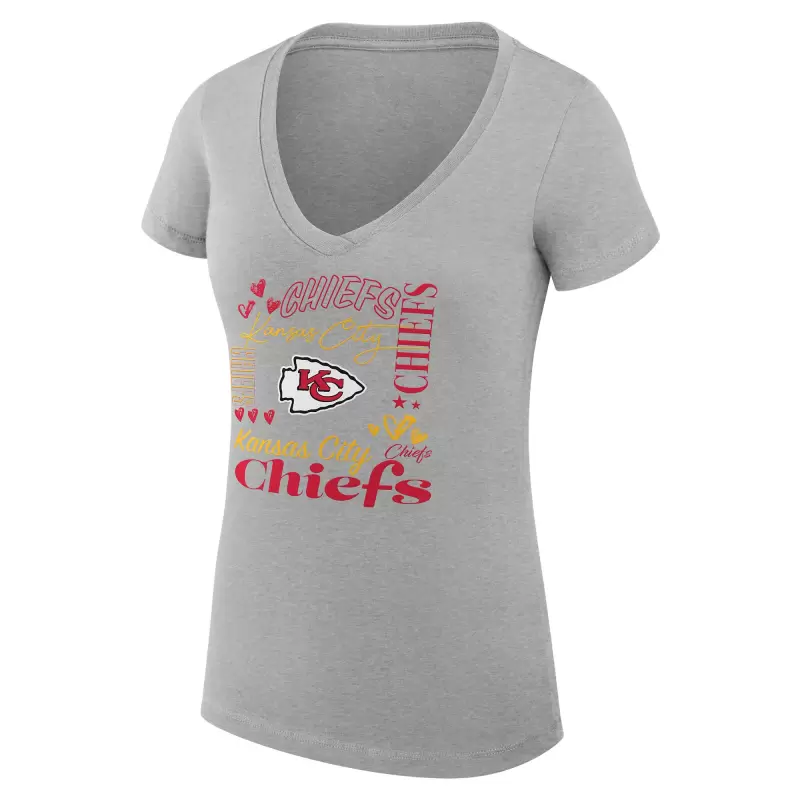 Women’s G-III 4Her by Carl Banks Heather Gray Kansas City Chiefs Super-Slim Fit Lightweight Collage Team V-Neck T-Shirt