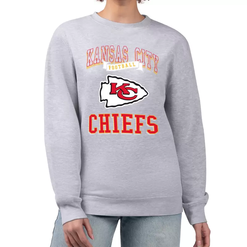 Women’s G-III 4Her by Carl Banks Heather Gray Kansas City Chiefs Football Logo Graphic Fleece Tri-Blend Pullover Sweatshirt