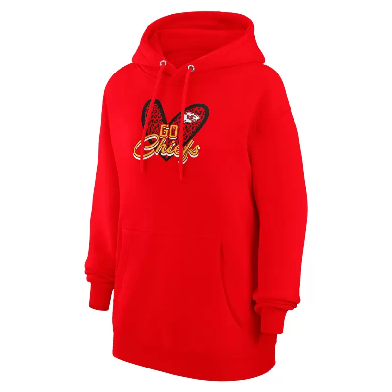 Women’s G-III 4Her by Carl Banks Red Kansas City Chiefs Animal Print Heart Team Graphic Fleece Tri-Blend Pullover Hoodie