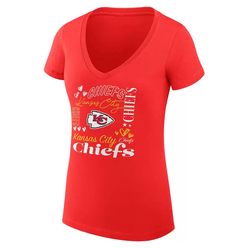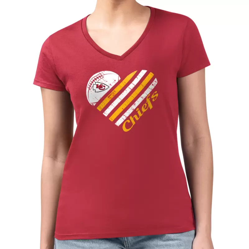Women’s G-III 4Her by Carl Banks Red Kansas City Chiefs Super-Slim Fit Lightweight Heart Graphic V-Neck T-Shirt