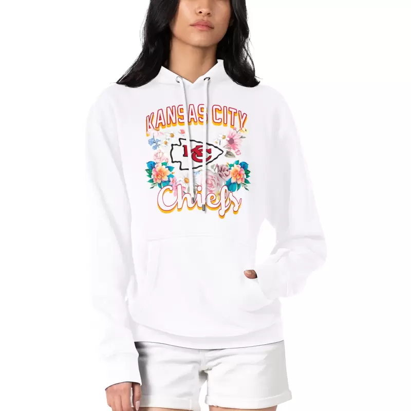 Women’s G-III 4Her by Carl Banks White Kansas City Chiefs Flowers Team Logo Graphic Fleece Pullover Hoodie
