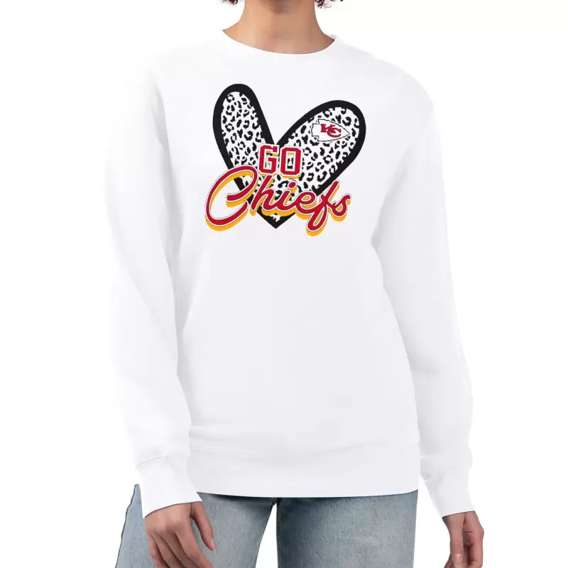 Women’s G-III 4Her by Carl Banks White Kansas City Chiefs Leopard Heart Pullover Sweatshirt