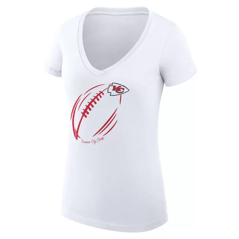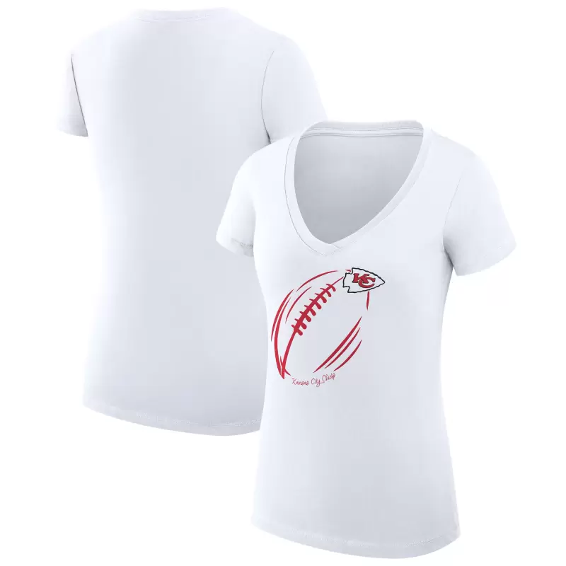 Women’s G-III 4Her by Carl Banks White Kansas City Chiefs Super-Slim Fit Lightweight Subtle Football V-Neck T-Shirt