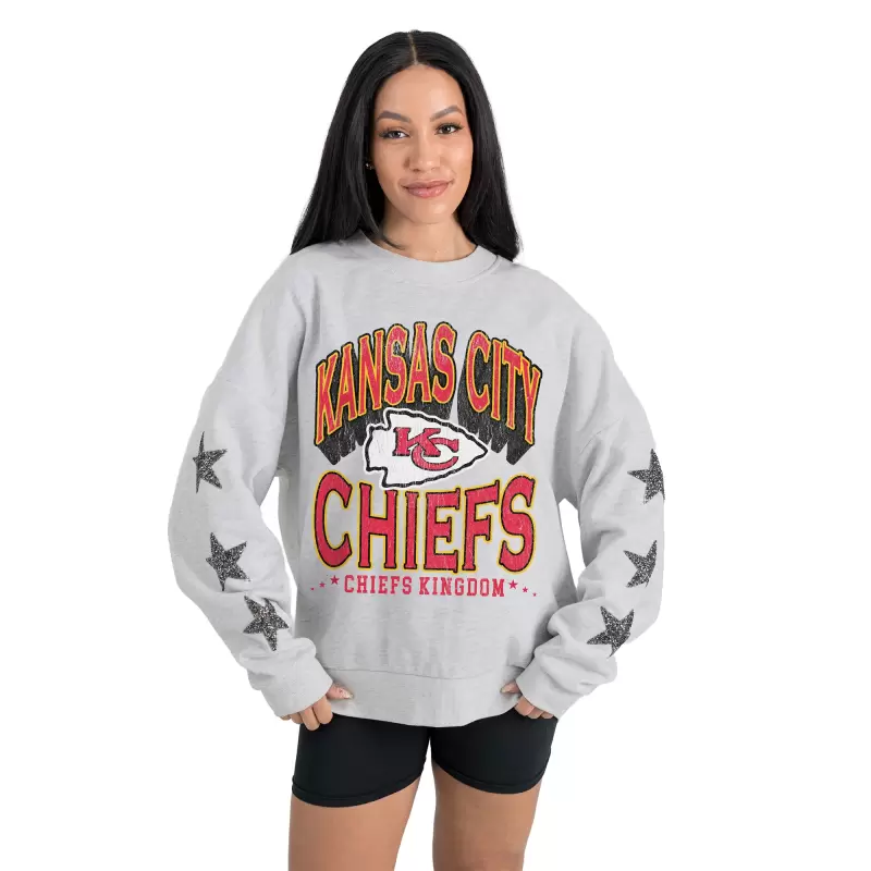 Women’s Gameday Couture Ash Kansas City Chiefs Resilience Relaxed Rhinestone Pullover Sweatshirt
