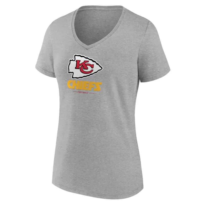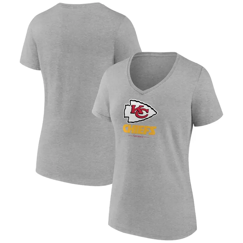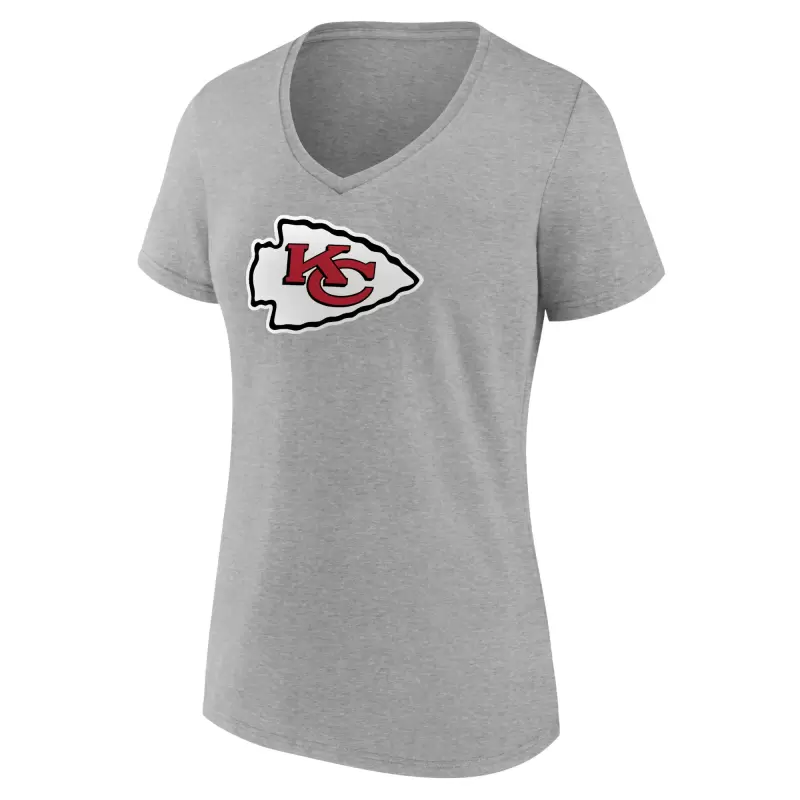 Women’s Heather Gray Kansas City Chiefs Primary Team Logo V-Neck T-Shirt