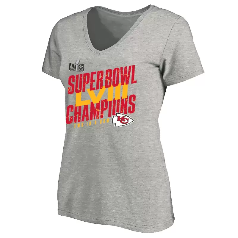 Women’s Heather Gray Kansas City Chiefs Super Bowl LVIII Champions Plus Size Iconic Victory V-Neck T-Shirt