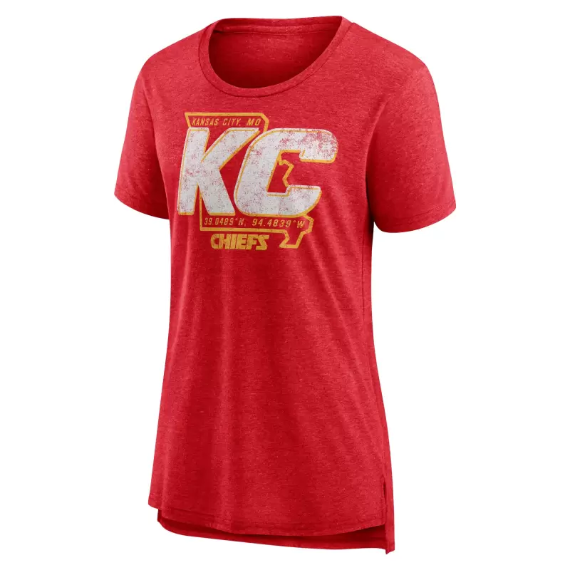 Women’s Heather Red Kansas City Chiefs Hometown First Down Tri-Blend T-Shirt