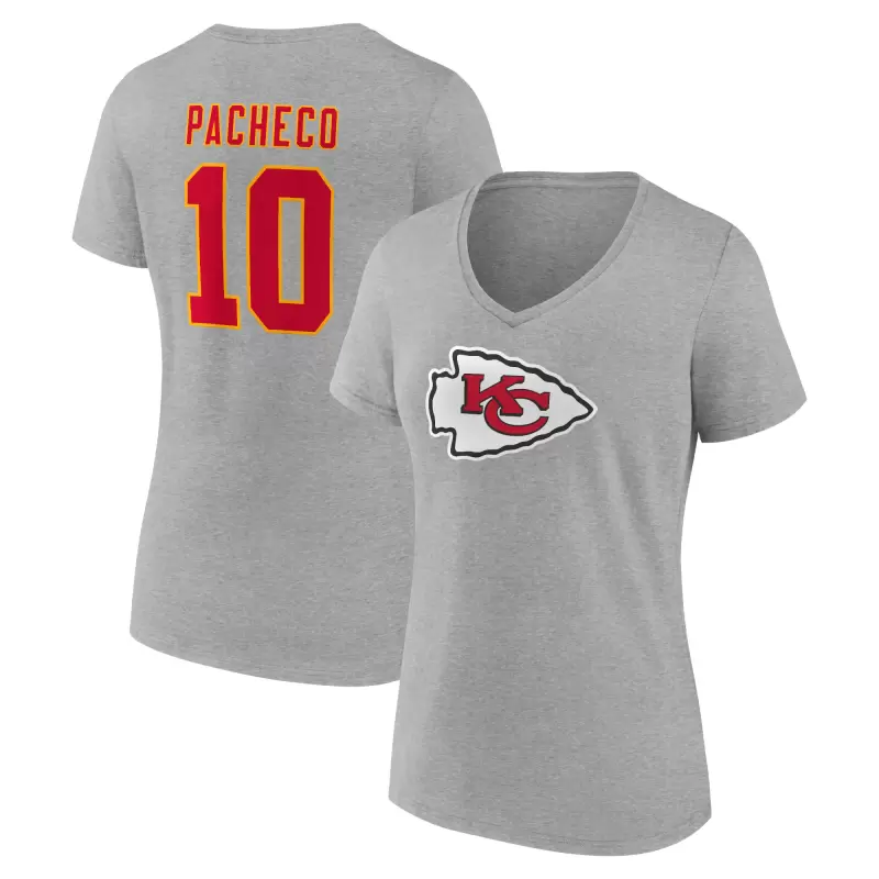 Women’s Isiah Pacheco Gray Kansas City Chiefs Icon Player Name & Number V-Neck T-Shirt