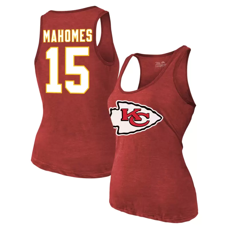 Women’s Majestic Threads Patrick Mahomes Red Kansas City Chiefs Name & Number Tri-Blend Tank Top