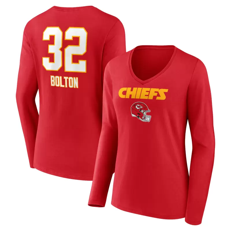 Women’s Nick Bolton Red Kansas City Chiefs Wordmark Player Name & Number Long Sleeve V-Neck T-Shirt