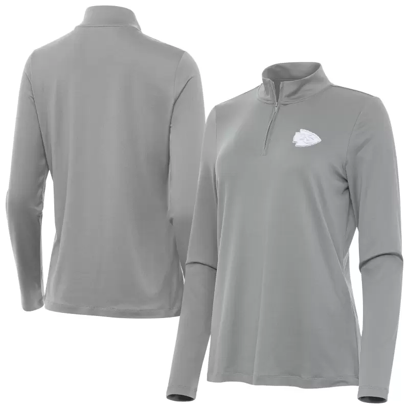 Women’s Antigua Gray Kansas City Chiefs Reprocess Quarter-Zip Top