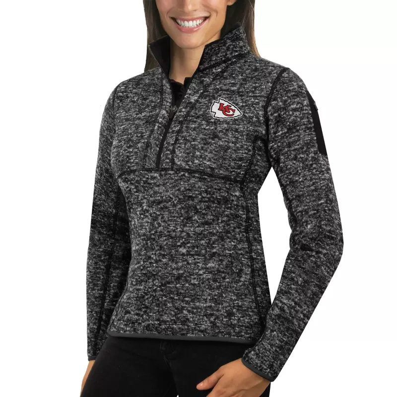Women’s Antigua Heather Black Kansas City Chiefs Fortune Half-Zip Sweater